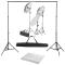 Kit de studio photo avec ensemble d'éclairage et toile de fondNotre kit de studio photo, équipé de lampes de studio et de toile de fond, est un choix idéal pour photographier en studio ou sur place. Ce kit d'éclairage convient à la prise de photos ou de vidéos sur place et en studio. Grâce aux lampes à lumière du jour, 5500 Kelvin, vous pouvez créer un éclairage naturel. Le rendement lumineux de chaque lampe est de 100 watts et il est fourni par une ampoule de 24 watts chacune. Les lumières peuvent être fixées sur le trépied, qui peut atteindre une hauteur maximale de 230 cm. Les trois parapluies (1 x blanc, 2 x argenté) fournissent une lumière douce et évitent les ombres dures. Le kit est facile à installer et à emporter avec vous dans le sac de transport inclus. Ce kit de toile de fond contient 1 toile de fond et un cadre pliable et réglable qui se range dans un sac de transport pratique pour les prises de vue sur place. Le système a une largeur maximale de 300 cm et peut être combiné avec la toile de fond en coton incluse. La toile de fond est faite de 100 % coton, sans coutures et résistante à la décoloration. Vous pouvez trouver la toile de fond en coton de différentes couleurs et tailles dans notre boutique. Le système de toile de fond flexible est facile à installer et peut être utilisé pour les portraits, la photographie publicitaire ou la photographie de produits. Notre kit de studio est facile à assembler.