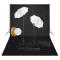 Kit de studio photo avec lampes toile de fond et réflecteur Ce kit de studio est idéal pour la photographie en studio ou sur une certaine place. Le système de fond télescopique est réglable en largeur et en hauteur, répondant à vos différents besoins. Combiné avec la toile de fond, il est idéal pour photographier et filmer. En utilisant les lampes à lumière du jour avec une température de couleur de 5500 Kelvin, l'ensemble d'éclairage est possible de capturer votre sujet de manière naturelle. Vous pouvez fixer la lampe sur un trépied et atteindre une hauteur maximale de 230 cm. Les deux parapluies blancs fournissent une lumière douce, évitant ainsi les ombres dures. De plus, le trépied a un filetage standard 1/4" pour tous les appareils photo analogiques et numériques. L'ensemble de réflecteurs comprend un réflecteur rond 5 en 1 et un réflecteur ellipse 2 en 1. Chaque réflecteur est livré avec des panneaux de surface différents. Vous pouvez utiliser différentes combinaisons pour des lumières plus chaudes ou plus froides.Avec le sac de transport inclus, le kit de studio est facile à ranger et à transporter. Cet appareil n'est pas destiné à être utilisé par des personnes (y compris des enfants) dont les capacités physiques, sensorielles ou mentales sont réduites, ou qui manquent d'expérience et de connaissances, à moins qu'elles n'aient bénéficié d'une surveillance ou d'instructions concernant l'utilisation de l'appareil de la part d'une personne responsable de leur sécurité. Ce produit n'est pas un jouet. Ne laissez pas les enfants jouer avec l'appareil.