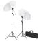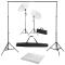 Kit de studio photo avec toile de fond lampes et parapluiesCe kit de studio photo, composé d'un ensemble de lampes de photographie et d'une toile de fond, est idéal pour la photographie en studio ou sur place. Ce kit de toile de fond contient 1 toile de fond et un cadre pliable et réglable qui tient dans un sac de transport pratique pour les tournages sur place. Le système a une largeur maximale de 300 cm et peut être combiné avec l'une de nos nombreuses toiles de fond de différentes couleurs. La toile de fond photographique, faite de 100 % coton et d'une taille de 300x300 cm, ne se décolore pas et est idéale pour la photographie de portraits et d'autres projets commerciaux. L'ensemble d'éclairage est idéal pour la photographie numérique et analogique de produits et de portraits. En utilisant les lampes à lumière du jour avec une température de couleur de 5500 Kelvin, il est possible de capturer votre sujet de manière naturelle. La puissance lumineuse des deux lampes est de 100 watts et est fournie par une ampoule économe en énergie de seulement 24 watts. L'ensemble d'éclairage est adapté à la photographie analogique et numérique. Vous pouvez fixer la lampe sur un trépied et atteindre une hauteur maximale de 230 cm. Les deux parapluies blancs fournissent une lumière douce afin d'éviter les ombres trop fortes. Tout est facile et rapide à assembler et tient dans une mallette de transport pratique, ce qui permet d'emporter facilement l'éclairage. Notre kit de studio est également facile à assembler. Cet appareil n'est pas destiné à être utilisé par des personnes (y compris des enfants) dont les capacités physiques, sensorielles ou mentales sont réduites, ou qui manquent d'expérience et de connaissances, à moins qu'elles n'aient bénéficié d'une surveillance ou d'instructions concernant l'utilisation de l'appareil de la part d'une personne responsable de leur sécurité. Ce produit n'est pas un jouet. Ne laissez pas les enfants jouer avec l'appareil.