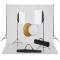 Kit de studio photo boîtes à lumière toile de fond réflecteurCe kit de studio est idéal pour la photographie en studio ou sur une certaine place. Le système de fond télescopique est réglable en largeur et en hauteur, répondant à vos différents besoins. Combiné avec la toile de fond, il est idéal pour photographier et filmer. Les lampes de studio professionnelles sont conçues pour adoucir les flux lumineux et supprimer les ombres pour une prise de vue parfaite. La lampe de studio softbox est livrée avec un trépied en acier stable et robuste qui est réglable en hauteur de 90 à 208 cm pour mieux répondre à vos besoins. De plus, le trépied a un filetage standard 1/4" pour tous les appareils photo analogiques et numériques. L'ensemble de réflecteurs comprend un réflecteur rond 5 en 1 et un réflecteur ellipse 2 en 1. Chaque réflecteur est livré avec des panneaux de surface différents. Vous pouvez travailler avec différentes combinaisons pour des lumières plus chaudes ou plus froides. Avec le sac de transport inclus, le kit de studio est facile à ranger et à transporter. Cet appareil n'est pas destiné à être utilisé par des personnes (y compris des enfants) dont les capacités physiques, sensorielles ou mentales sont réduites, ou qui manquent d'expérience et de connaissances, à moins qu'elles n'aient bénéficié d'une surveillance ou d'instructions concernant l'utilisation de l'appareil de la part d'une personne responsable de leur sécurité. Ce produit n'est pas un jouet. Ne laissez pas les enfants jouer avec l'appareil.