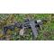 - une crosse + garde main (en 3 parties) munis de rails picatinny sur le dessus et le dessous (pour fixer un porte chargeur, une poignée tactique, un bipied, etc) ainsi que 2 latéraux à la fin du garde main (pour fixer un laser, une lampe tactique, etc).