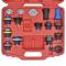 Kit de testeur de pression du radiateur 18 pcsCe kit de testeur de pression de radiateur universel de haute qualité se compose de 18 pièces et sera un outil d'atelier idéal pour les passionnés de voiture et les professionnels de l'automobile. Ce kit de testeur de pression de radiateur vous aidera à détecter les fuites internes et externes de votre système de refroidissement. Ce kit à outils vous permet de changer le liquide de refroidissement et de tester les fuites dans le système de refroidissement du véhicule, y compris le radiateur, le noyau de chauffage et le bouchon de radiateur, d'une manière simple et directe. Fabriqué en matériau de haute qualité, cet ensemble de testeur de pression est très durable. Le kit est livré dans une boîte moulée par soufflage pour faciliter le stockage et le transport.