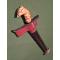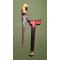 Le fourreau est en bois peint en noir et rouge ,avec une bouterolle en argent gravée(argent à bas titre).
