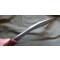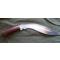 Kukri réalisé sur commande à la demande d'un militaire anglais dans les années précédant, ou durant la seconde guerre mondiale. Kukri en cuir et bois apparent de couleur rouge muni d'un porte fourreau typique de l'armée britannique. Lame traditionnelle, à double "fuller" datable des années 30 insérée dans une poignée à l'européenne avec une mitre en laiton provenant probablement de matériel militaire. Souvent ces "private prurchase" venaient en complément du kukri réglementaire (les Gurkas possédant généralement plusieurs kukris), ou kukri faisant office de couteau de survi pour un membre d'équipage de la RAF ou des chars, ce type de kukri étant généralement plus court et personnalisé, ce qui est le cas ici.
