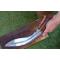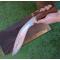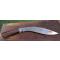 Kukri personnalisé époque Seconde Guerre mondiale. Lame de très bonne facture à double fuller datable des années 1920 – 1930 montée avec poignée de goût occidentale, ayant appartenu probablement de ce fait à un Anglais. La mitre avant en laiton semble issue de matériel militaire (bague d'obus ?). Le fourreau est d’origine en bois assemblé avec des goupilles et pourvu d’un porte-fourreau conforme aux types réglementaires de l’armée britannique, le tout d'une jolie couleur brun rouge. Possible kukri d'équipage RAF ou d'équipage de char : les aviateurs opérant en Birmanie contre les Japonais disposaient de couteaux de survie, mais la plupart préféraient porter le kukri, plus adapté à la jungle birmane en cas d’éjection. Assez souvent ils étaient personnalisés et plus court que les modèles réglementaire Mk2, ce qui est le cas ici.