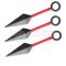 Magnifique ensemble de 3 Kunais noir tressé d'un ruban rouge au niveau de chaque manche.