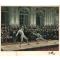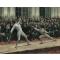 Vigna-Vigneron. 1891. 433 x 509 mm. Planche lithographiée en couleurs d'après une peinture de Frédéric Régamey, figurant un célèbre assaut entre le Comte de Bondy, Préfet du département de la Seine, et le Maître d'armes Justin Lafaugère de Lyon, en 1816, dans les locaux de l'actuel Ministère des Affaires Etrangères quai d'Orsay. Parmi les témoins de cet assaut figurent des maîtres et amateurs en escrime célèbres de l'époque Gravure en bon état avec quelques traces de mouillures sur les bords mais épargnant la gravure même ; accompagnée du petit tableau représentant les noms des figurants maîtres et amateurs (et Regamey)