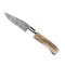 Couteau Laguiole GILLES® « GENTLEMAN », lame damas inox 160 couches à cran (en bout de manche), mitre brillante, manche 10,5 cm pointe de corne blonde, abeille et ressort forgés et ciselés main. Modèle équipé d'une butée de lame garantissant la longévité de la coupe.