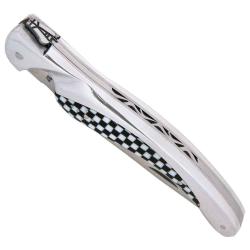 Couteau  Laguiole LE FIDELE lame acier 12C27 dos guilloché plein manche en aluminium brillant