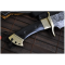 Pliage de deux types d'acier (1095 & 15 N 25) plusieurs fois pour obtenir+ De 150 à 250 couches. La dureté de l'acier est 56-58 HRC à l'échelle Rockwell.