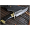 Couteau Bowie à lame fixe en acier Damas avec gaine