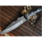 Pliage de deux types d'acier (1095 & 15 N 25) plusieurs fois pour obtenir+ De 200 couches. La dureté de l'acier est 56-58 HRC à l'échelle Rockwell.