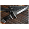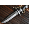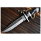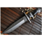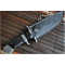 L’acier damas utilisé est constitué de plusieurs couches et a été plié avec deux types d'acier (1095 et 15N25) plusieurs fois afin d’obtenir une pièce de qualité de 150 à 250 couches.