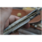 L’acier damas utilisé est constitué de plusieurs couches et a été plié avec deux types d'acier (1095 et 15N25) plusieurs fois afin d’obtenir une pièce de qualité de 150 à 250 couches.