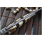 Pliage de deux types d'acier (1095 & 15 N 25) plusieurs fois pour obtenir+ De 200 couches. La dureté de l'acier est 56-58 HRC à l'échelle Rockwell.