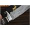 L’acier damas utilisé est constitué de plusieurs couches et a été plié avec deux types d'acier (1095 et 15N25) plusieurs fois afin d’obtenir une pièce de qualité de 150 à 250 couches.