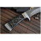 L’acier damas utilisé est constitué de plusieurs couches et a été plié avec deux types d'acier (1095 et 15N25) plusieurs fois afin d’obtenir une pièce de qualité de 150 à 250 couches.