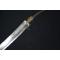 Cette lame a été réparée, à 30 cm de l'extrémité, elle avait due être cassée. Elle a été repolie, et il subsiste des traces légères de piqûres.