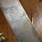 Dans son fourreau en cuir déchiré avant la bouterole, chape laiton bouton en écu , longue bouterole laiton.