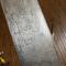 Lame à simple tranchant légèrement courbe , gravée sur ses deux faces : soleil, personnage en tunique armée d'un sabre à l'orientale, nombreux marquages à déchiffrer, sur la soie le chiffre 100 et il me semble un poinçon . Un peut d'oxydation légère , fil de lame bien propre et bien tranchant.