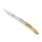 Couteau « Le Thiers® Advance », lame mate à cran (pompe centrale) acier RWL34, mitre inox mate, manche 11,5 cm buis foudroyé.