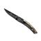 Couteau « Le Thiers® » par Claude DOZORME, entièrement noir acier X50CrMoV15, lame à cran intérieur (en position fermée la lame entièrement plate du côté du manche reste apparente), manche 10,5 cm habillage corne de bélier, avec clip.