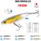 3D Prism Finish : le leurre dispose d'un film holographique interne diffractant la lumière en de multiples coloris. Contrairement aux leurres possédant un revêtement externe, celui-ci renvoie de nombreux reflets multidirectionnels tout en offrant l'avantage de n'être jamais abimé par les attaques ou le frottement des hameçons.