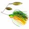 Spinnerbait double palettes willow dorées. Flash intense et fortes vibrations. Idéal en eau teintée et zones encombrées. Armature anti-accrocs. Parfait pour brochet, black-bass et perche. Spinnerbait double willow. Jupe silicone multi-brins. Armature V anti-accrocs. Palettes dorées martelées. OEil 3D. Pour brochet, black-bass, perche.