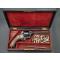 Le 9 septembre 1868 Eugène Lefaucheux dépose un brevet d'un revolver qui rompt définitivement avec sa production d'armes à broches type 1858, premier revolver qu'il propose à cage fermés tirant une cartouche métallique à percussion centrale. LA platine dont Lefaucheux envisage l'interchangeabilité des pièces constitutives permet le tir en simple et double action. Ce prototype n°1 de série est rigoureusement conforme au dessin du brevet et constitue la première étape vers le futur Mle 1870 de Marine. Bronzage sans oxydation, mécanisme parfaitement fonctionnel sans jeu, marquages non atténués, poinçon LF1 surmonté du célèbre pistolet à canon cassé et gravure main " E. LEFAUCHEUX Bté A PARIS ", plaquettes de crosse en noyer sans usure, rayures brillantes miroir. Arme disposée dans son coffret en bois noirci recouvert à l'intérieur monté à l'anglaise et recouvert de velours de soie rouge, monogramme en laiton gravé L.LEGER, munitions d'époque et baguette de nettoyage en fer.