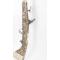 Canon de 129cm à pans puis rond, trombloné à la bouche, maintenu au fut du canon en bois par seize capucines en argent gravées, renfort en argent cloué au passage de baguette en fer donc le canal est bouché par une bande de laiton. Platine à silex en fer. Crosse en os de chameau recouverte de plaques d'argent découpées et ajourées et de clous en argent, décors gravés et teintés de pigments rouges. Pontet en laiton recouvert d'argent ciselé et ajouré.