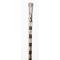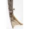 Canon de 124cm à pans puis rond, trombloné à la bouche, maintenu au fut du canon en bois par quinze capucines en argent gravées, renfort en fer sous la platine et autour du canon sur son premier tiers. Platine à silex en fer. Crosse bois à talon en os de chameau, recouverte de plaques d'argent et de laiton découpées et ajourées et de clous en argent, décors incrustés et gravés, en partie teintés de pigments rouges. Pontet en laiton ciselé.