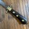 COUTEAU / POIGNARD de chasse vénerie à fusée en corne à trois boutons de rivures en laiton . Croisière laiton en S. Lame effilée à pan creux avec gravures.