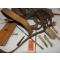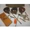garnie de ses divers écouvillons en laiton et de son huilier,
