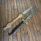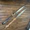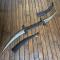 Un jolie petit Haladie double lames opposé tout acier y compris les fourreaux le tout recouvert de cuir. 34 cm lames gravés.