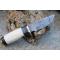 LOT DE 2 Couteau Little Skinner Damas Lame 256 Couches Manche Os & Corne Fabric Artisanale Etui Cuir