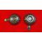 Lot de deux tassous en inox, avec un motif grappe de raisin et feuilles, diamètre 8,5 cm, hauteur de 2 cm.