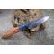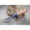Le Skinner 1075 : Longueur totale 18.5cm environ - Longueur de lame 8.5cm environ - Lame en Acier carbone 1075 - Construction Plate semelle - Manche bois - Trou pour dragonne - Mitres bois - Entretoises en laiton - Etui cuir