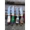 LOT DE 4 Couteau Skinner Damas Lame 256 Couches Manche Bois/Os/Corne/Cerf Fab Artisanale Etui Cuir01