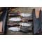 LOT DE 4 Couteau Skinner Damas Lame 256 Couches Manche Corne de Bélier Fab Artisanale Etui Cuir 01