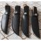 LOT DE 4 POIGNARDS EN PARFAIT ÉTAT JAMAIS SERVIE TRES TRANCHANTS, DANS LEURS ETUIS EN CUIR MANCHES EN BOIS DE TECK