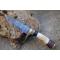 LOT DE 5 Couteau Skinner Damas Lame 256 Couches Manche Os/Cerf/Bélier Cerf Fab Artisanale Etui Cuir