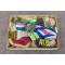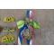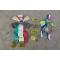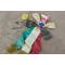 Cocarde tissu en étoile, deux branches vert clair avec galon doré, trois branches tricolores, le tout agrémenté de pompons en fil métallique argenté.