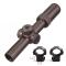 Petite lunette mixte avec réticule éclairé rouge ou vert, de fabrication Chinoise, tourelles tactiques, colliers inclus. De qualité sans plus car à moins de 200€ FP inclus il ne faut pas s'attendre à des miracles. Cependant optique très claire même par temps pluvieux (ça ne va pas au delà) idéal pour le tir de 50 à 100 M. en stand ou en battue, convient pour des petits calibres (perso 22 WMR) et pour acheteur n'ayant pas un gros budget mais voulant une lunette de tir claire avec un réticule bien fait.