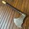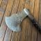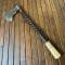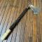 Très belle réalisation de qualité, manche en bois précieux d'ébène torsadée embout à 6 pans en ivoire sculpté, fer de hache forgé et tranchant.