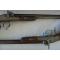 Canons rayés octogonaux DAMAS bruns 100% d'origine signés par le fabricant et numérotés 1 et 2. Fine gravure se fondant dans la cross, platines en relief richement gravées de feuillage. Demi cross en noyer sculptée de motif floraux.