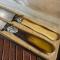 LUXUEUX COFFRET DE DEUX COUTEAUX, OS , CORNE BICOLORE , ARGENT , PARIS LA SAMARITAINE