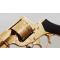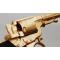 Revolver Perrin breveté à Paris modèle 1865 à cadre fermé, simple et double action calibre 11mm Perrin à bourrelet. Finition luxe gravé à fond creux puis doré comme il était à l'origine, retiré de sa patine avec un léger polissage avant d'être redoré les gravures sont très peu atténuées, marquage L. Perrin à Paris et poinçons côté gauche de la carcasse encore bien visibles, mécanisme complet et fonctionnel sans jeu particulier, bonne indexation et entrefer sur les chambres, cran de sécurité présent. Rayures peu usagées sans corrosion. Crosse monobloc en noyer quadrillée sans accident hormis un petit fêle au talon. N° de l'arme 3885.