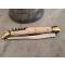 Magnifique Laguiole CALMELS 3 pièces de grande dimension 13 cm, qualité collection, plaquettes en très bel IVOIRE sans fêle , lame carbone jamais utilisé, ressort bien ferme sans jeu. La mouche et le ressort sont magnifiquement guilloché. Le manche du couteau a été légèrement repoli . Laguiole rare dans cet état.