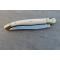 Lame acier inox 12C27 nettoyée, affûtée, frappée de la marque et du rare logo Manche en ivoire clouté laiton avec la croix de berger. Fonctionnement parfait. Aucun jeu et ressort ferme. Ouvert: 218 mm- Fermé: 121 mm. Poids: 101,35 g.
