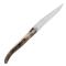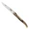 Longueur totale (mm) : 208 Longueur de la lame (mm) : 97 Largeur de la lame (mm) : 16 Épaisseur de la lame (mm) : 3 Matériau de la lame : Inox T12 Matériau du manche : Corne blonde Système : Cran Forcé Type d'étui : Coffret en bois Poids (g.) : 70 Pays d'origine : France